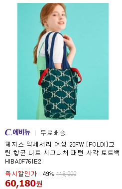 !헤지스! 라틴백 시그니처 패턴 사각 토트백 49% 세일!