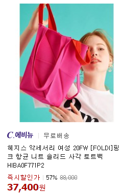 !헤지스! 라틴백 핑크 항균 니트 솔리드 사각 토트백 57% 세일!
