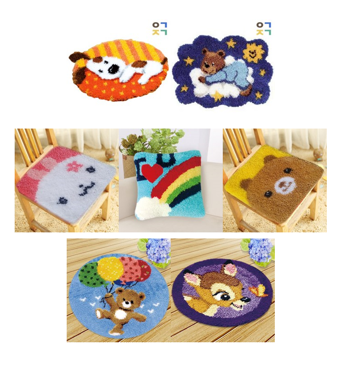 코린별 스킬자수 세트 래치훅 DIY 자수놓기 래치후크 러그, 곰돌이